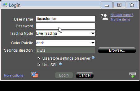 同时拥有IB交易账户和模拟账户的客户在登录这两种账户时一直都需要使用两套不同的登录信息。从955 beta版开始,这种情况发生了改变。现在使用正式登录信息您既可登录模拟账户又可登录真实(正式)账户。在登录框使用新的交易模式下拉列表择账户类型。设置会跟现在一样单独保存,因此,您对模拟账户作出的更改将只会保存在模拟账户设置中。